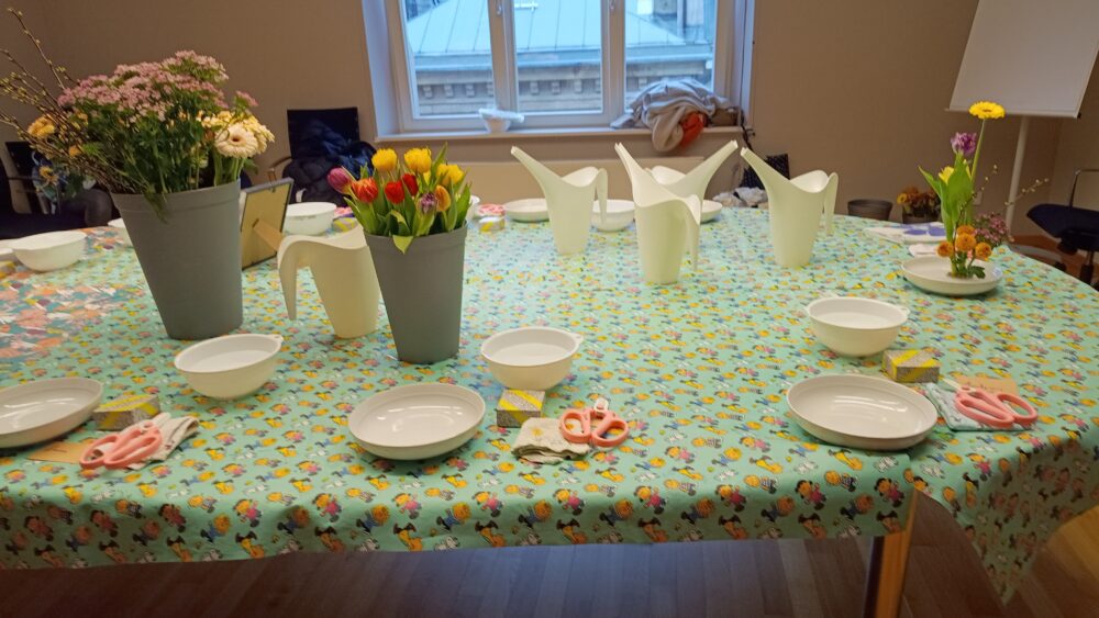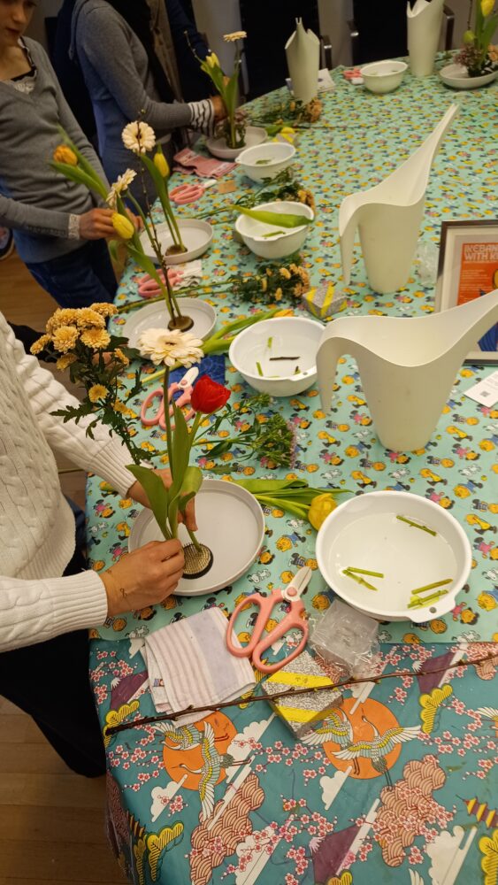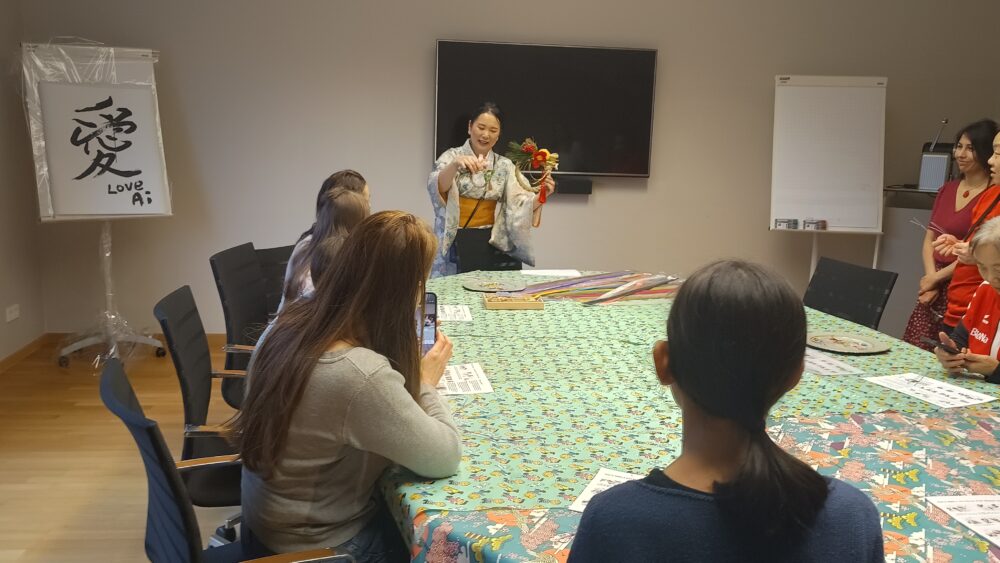 2人の日本人女性が、書道、水引き、生け花のワークショップを事前申込者に対して、そして私は折り紙と切り紙のワークショップを自由参加で開催しました。折り紙は相変わらず人気で用意した15席はすぐにいっぱいになり、2グループで合計約30人には一度に、途中参加の5.6人には個別指導しました。切り紙はパターンが6種類のため6人のグループで2回開催しました。