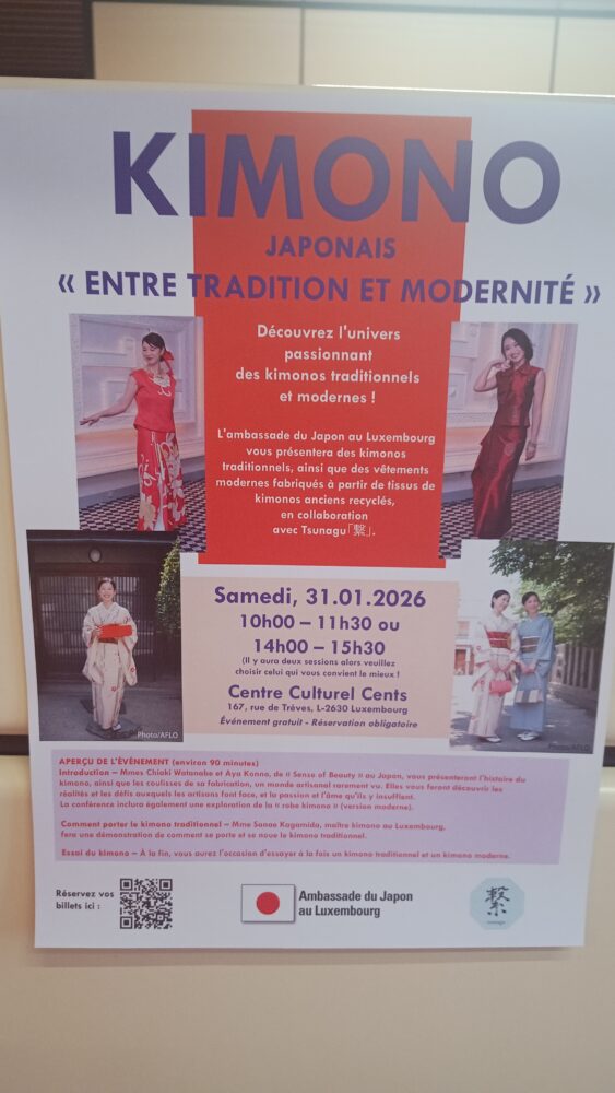 1月31日の午前と午後の2回、「着物-伝統と現在」が日本大使館主催イベントとして、空港近くの首都で唯一ルクセンブルク人が多数を占める地区Centsの文化センターで、開催されました。当日はイベントが集中していたため、午前中の部のみ取材してきました。なお首都の総人口の7割は外国人です。