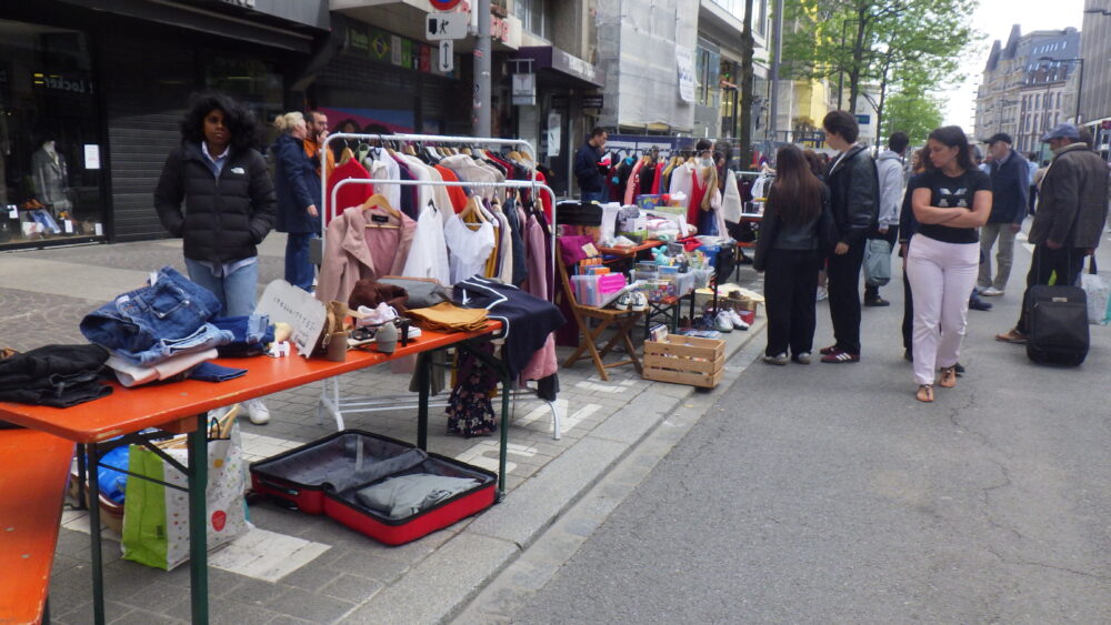 ギヨーム広場では、すでに春の定例行事であるオクターブの巡礼市の準備が始まっていたため、第一日曜日に開催されるフリーマーケットは、駅前商店街の道路を封鎖して、路上で開催されていました。16時近くになったので、閑散としていて、すでに閉じたスタンドや、片付けをしているスタンドもありました。