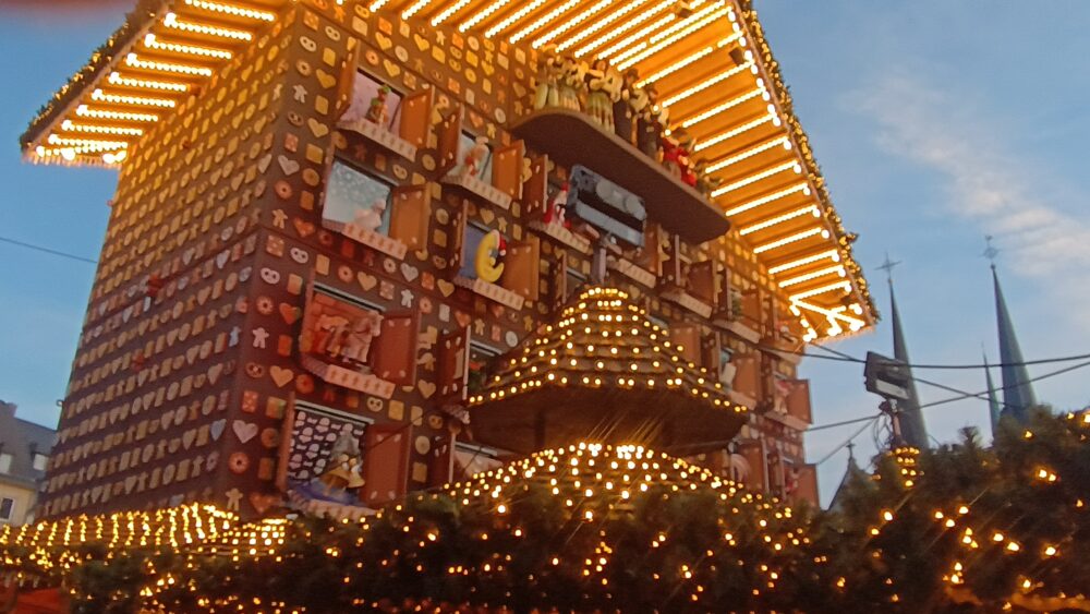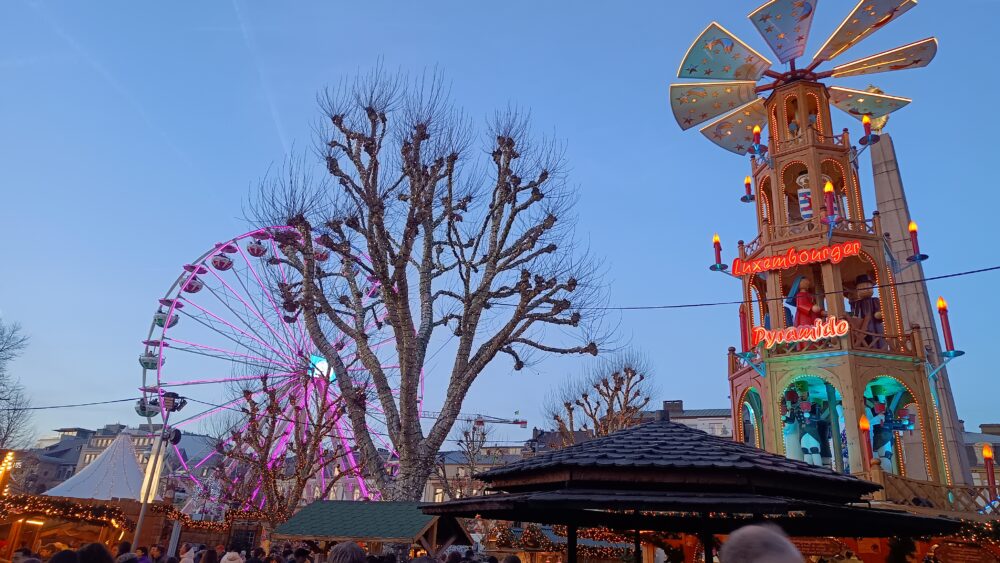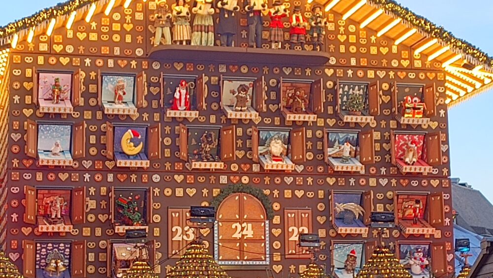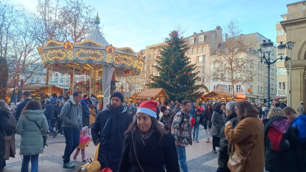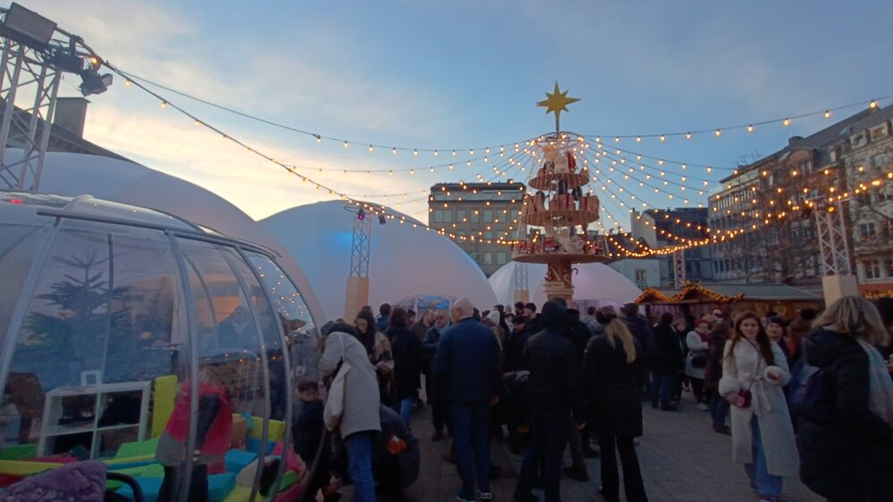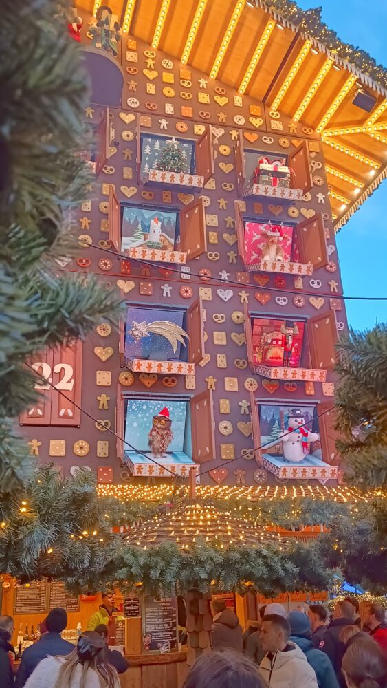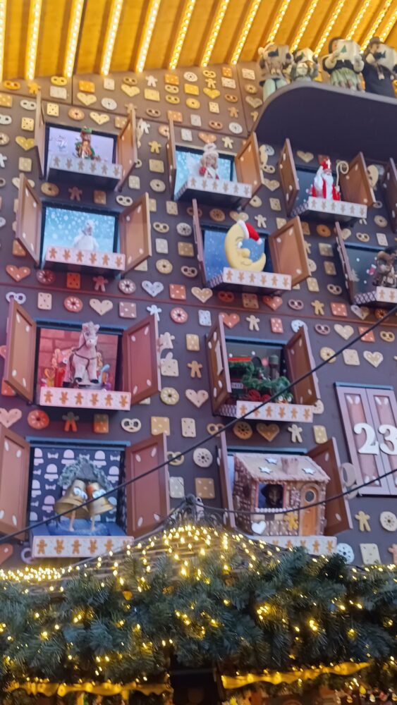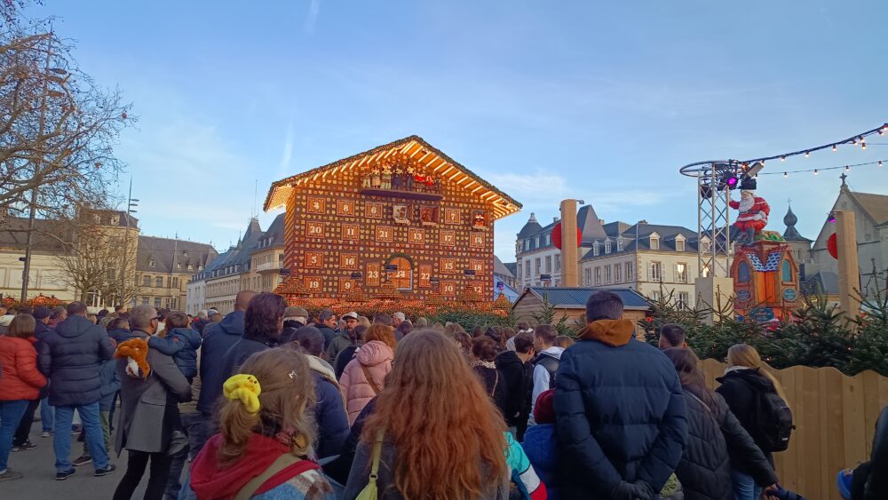 アドベントカレンダーの小屋はドイツのクリスマス市ではお馴染みですが、ルクセンブルクでは初の試みで、どの時間に扉が開くか不明でしたが、偶然、見ることができました。