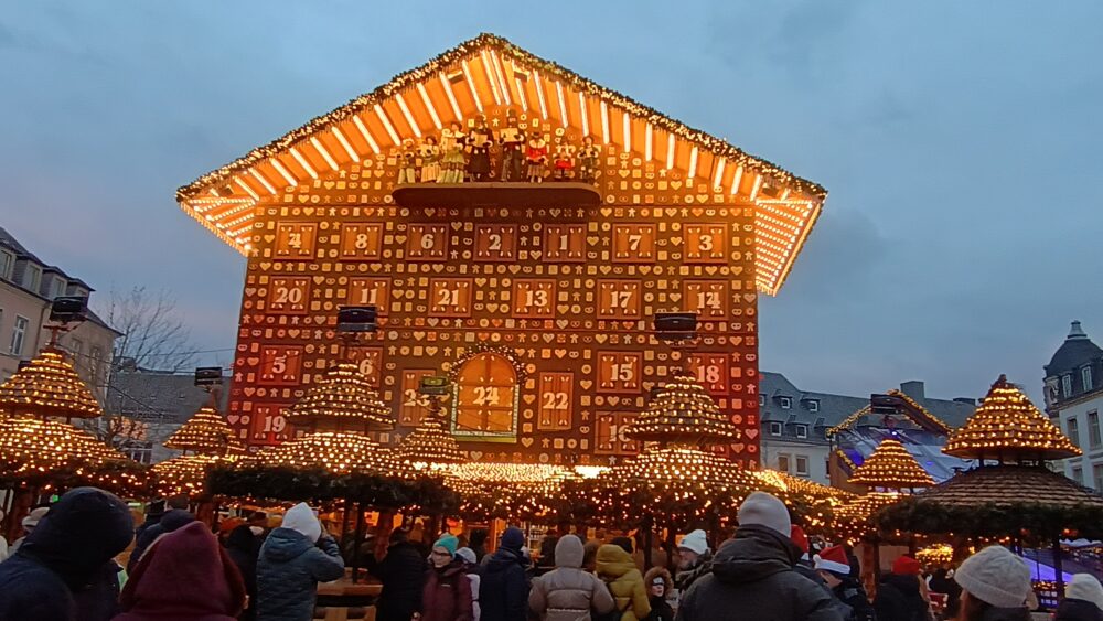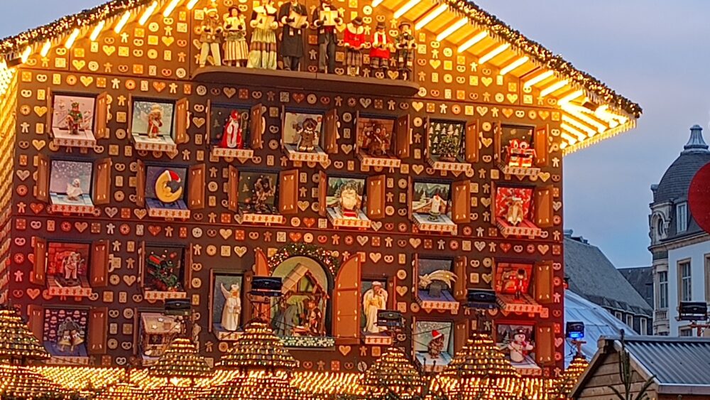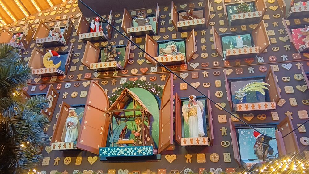 今年は暖冬が続いていましたが、クリスマスイブの24日は、冷たい風が吹き荒れる氷点下の寒い一日となりました。16時にギヨーム広場のアドベントカレンダー見に行きましたが、撮影中に手が凍えてしまうほどでした。24日の扉が開くとやはりキリスト生誕の人形が出てきました。