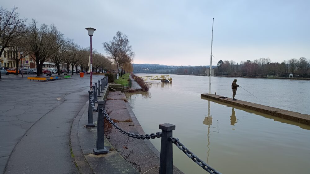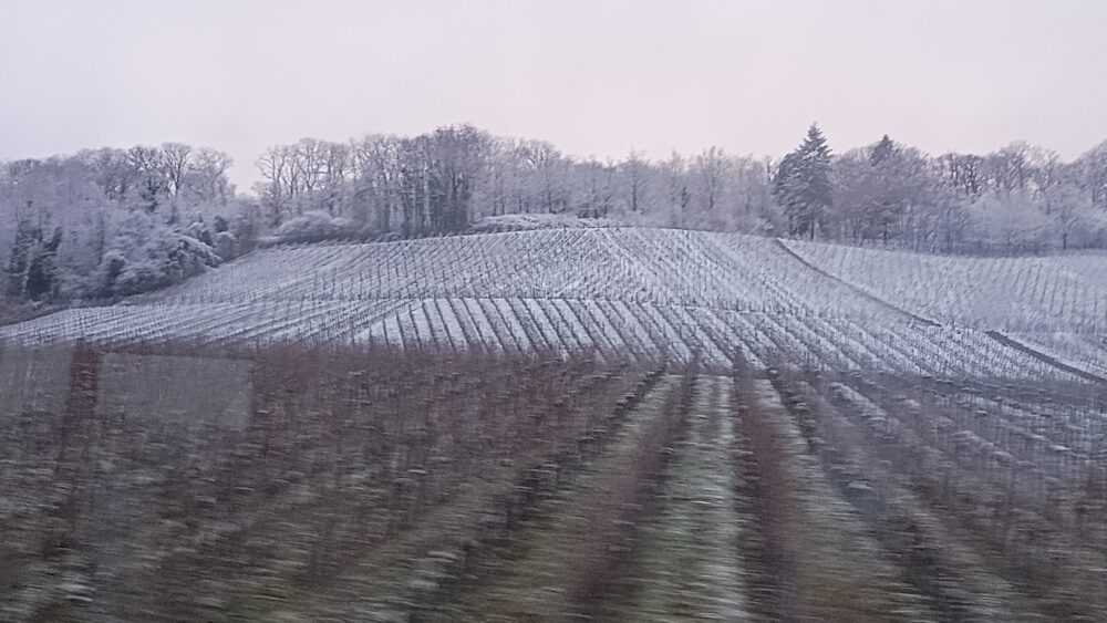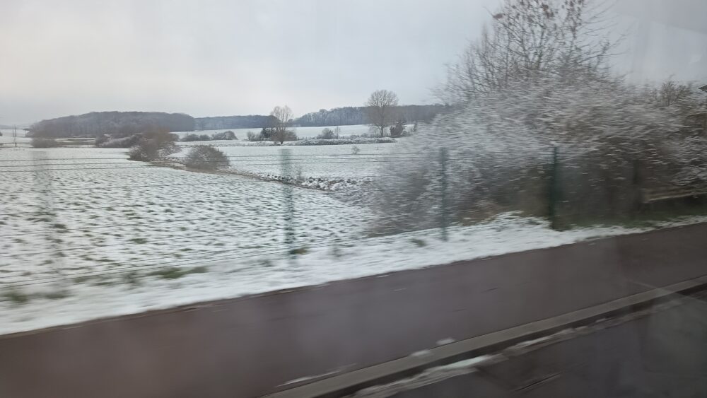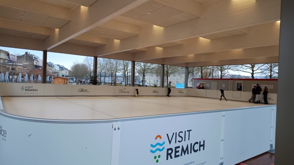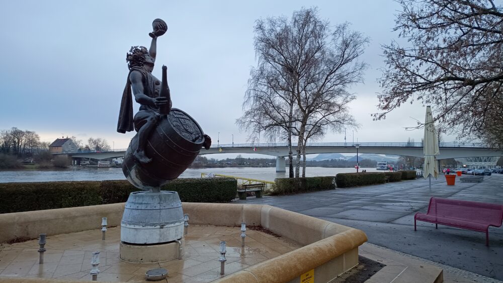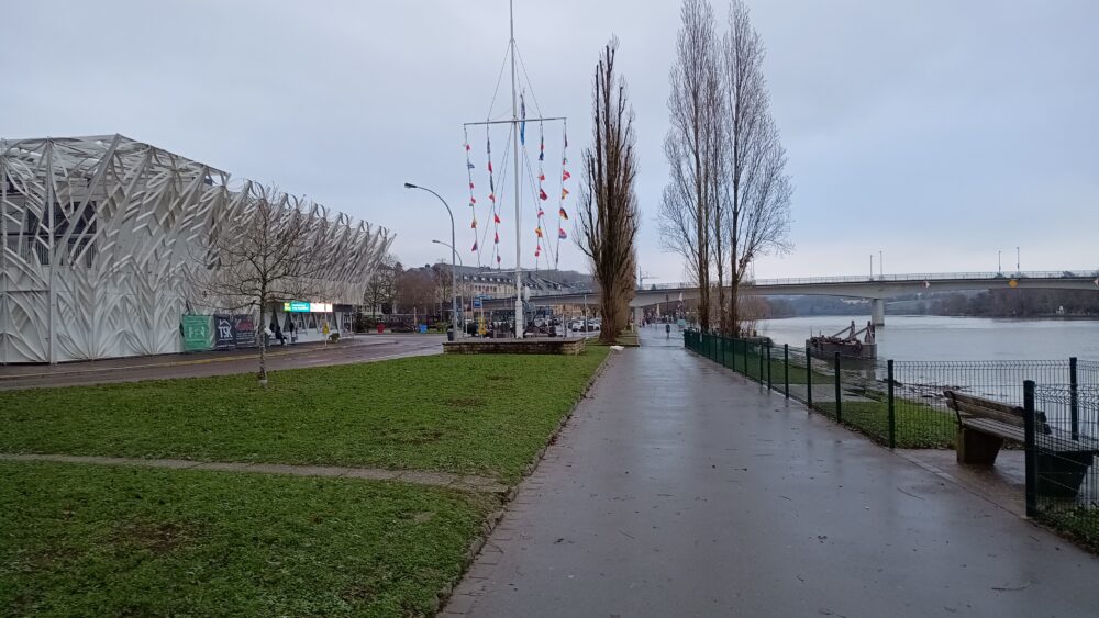 1月10日の土曜日午後は、午前中降り続いていた雪も止んだので、今年初めての遠出でRemichにバスで行ってきました。途中の原野やブドウ畑は雪景色でしたが、Modorfの町やRemichの川沿いは、雪がほとんど残ってなかったです。でも普段の土曜日は観光地として賑わうRemichの川沿いはマイナス2度の寒さで、ほとんど歩いている人がいませんでした。屋外アイススケートリンクも10代の5人しかおらず、滑っていたのは2人だけでした。