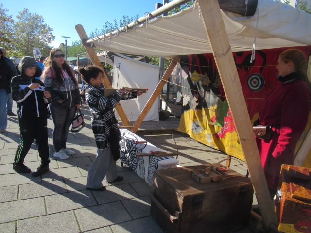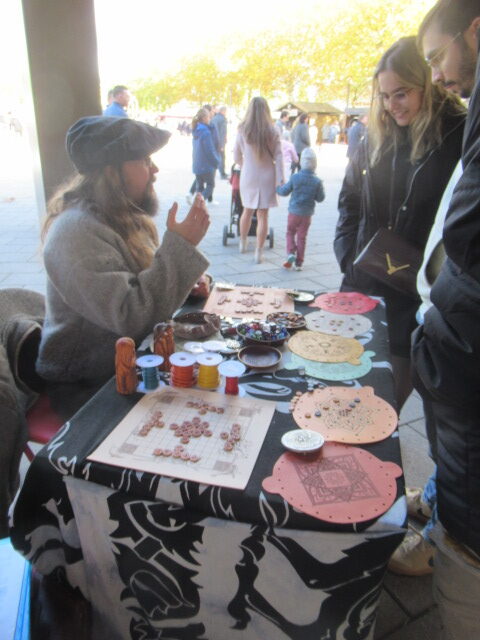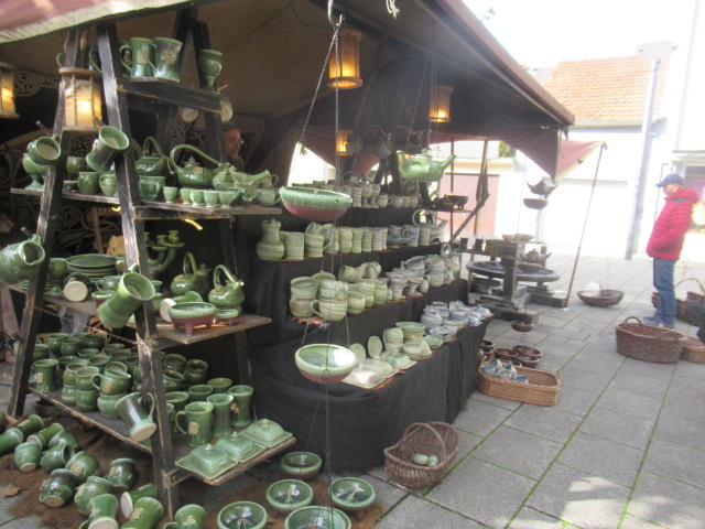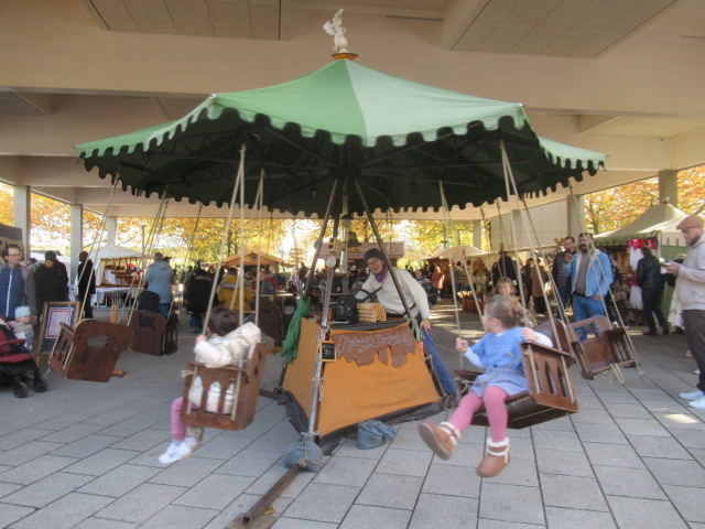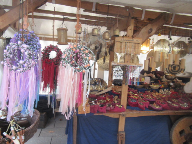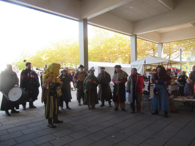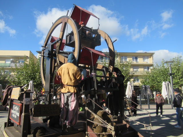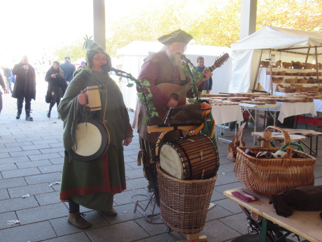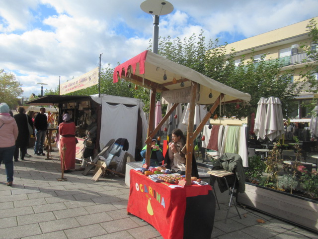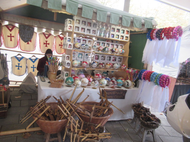 丁度、昼食時なので食事スタンドや席は混んでいましたが、小さな中世市なので、物品販売スタンドは空いていました。手で回す子供用の観覧車や回転ブランコや子供用の弓矢、おもちゃの船すいくいなどの子供用ゲームもありました。私は、中世の音楽が好きなので、中世楽器を使った音楽コンサートも聞いてきました。