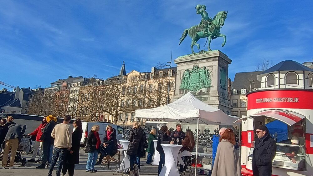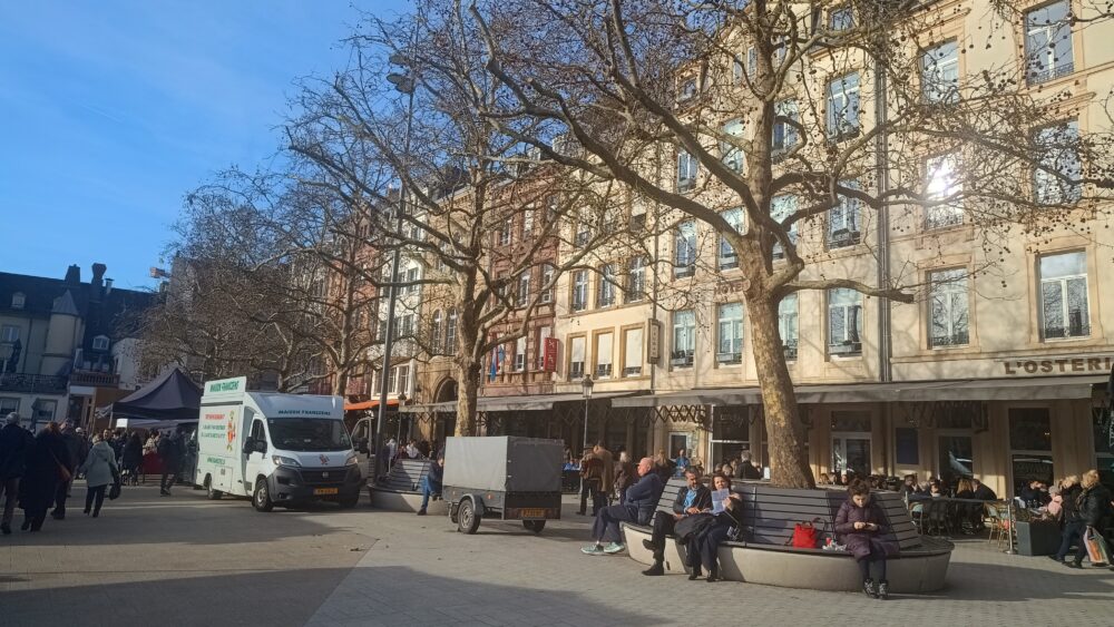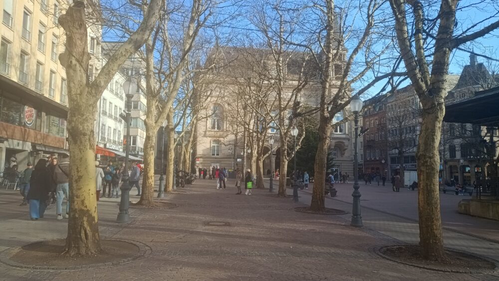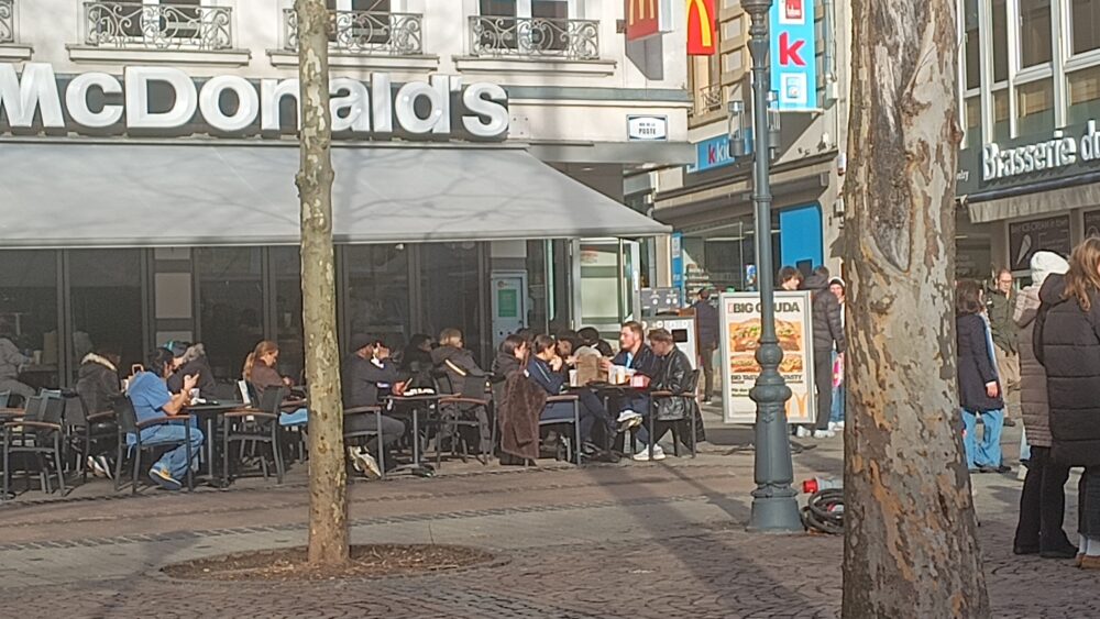 1月17日の土曜日は、朝からよく晴れて気温も午後には12度まで上がり、ぽかぽか陽気でした。若者の中には早くもTシャツ姿もいましたが例外で、多くの人は冬用コートを脱いでいるだけでした。レストランのテラス席も多くの人が日光浴を楽しみながら、食事を楽しんでいました。